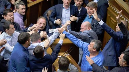 Верховна Рада України у п’ятницю, 6 жовтня, розглядає два президентські законопроекти про “реінтеграцію Донбасу“: №7163 “Про особливості державної політики із забезпечення державного суверенітету України над тимчасово окупованими територіями в Донецькій та Луганській областях” і №7164 “Про особливий порядок місцевого самоврядування в окремих районах Донецької та Луганської областей”. З самого ранку народні депутати від фракції “Блок Петра Порошенка” захопили парламентську президію та трибуну, щоб недопустити їх блокування фракцією “Об’єднання “Самопоміч” та ВО “Свобода”. Вчора, 5 жовтня, у зв’язку з блокуванням президії засідання парламенту було закрито. Коли ранкове засідання Верховної Ради відкрилося…