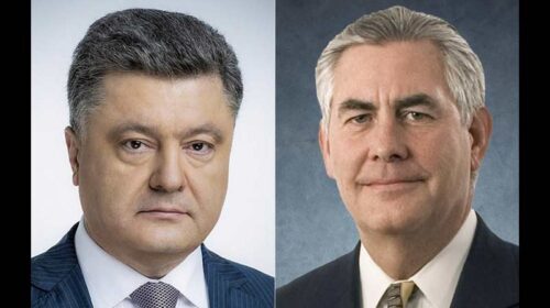 Жодних пакетних домовленостей з Росією щодо вирішення ситуації в Україні та Сирії не буде. У цьому президента Порошенка телефоном запевнив державний секретар США Рекс Тіллерсон перед початком американо-російських переговорів у Москві. Тіллерсон уже прибув до столиці РФ, де проведе переговори зі своїм російським колегою Сергієм Лавровим. Американський дипломат запевнив, що США підтримують територіальну цілісність України і наполягають на виконанні Мінських домовленостей, зокрема на важливості забезпечення режиму припинення вогню. У свою чергу Порошенко наголосив, що сьогодні Україна і США разом захищають демократичні цінності, які об’єднують наші країни, тому санкції мають бути збережені…