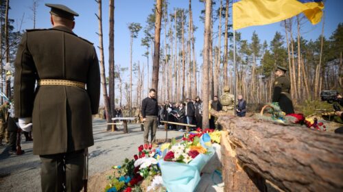 Президент Володимир Зеленський узяв участь у церемонії вшанування пам’яті захисників України, які загинули під час оборони та звільнення від російських окупантів села Мощун на Київщині. Глава держави віддав шану загиблим захисникам України біля пам’ятного знака «Янголам перемоги» в Мощуні. На переконання Президента, битва за Мощун стала одним із переломних моментів в історії сучасної України. «Я разом з усіма вами сьогодні тут, де рік тому відбувалися події такого масштабу й такого значення. Це битва за Мощун – невелике село, яке стало місцем великої відваги, великого подвигу наших великих людей. Ваших великих…