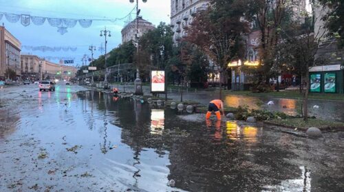 Після потужної нічної стихії усе ще перебувають “в полоні озер” деякі київські двори, майданчики торговельних закладів, особливо в центральних районах. Вода залила навіть салони багатьох автомобілів, які були припарковані в низині, на прибудинковій території. Головне управління ДСНС у Києві повідомляє про участь рятувальників у ліквідації наслідків стихії: На вул. Петрівська алея, (напроти входу до стадіону Лобановського), прибрано дерева. На вул. Дегтярівська перетин Довженка, прибрано 3 дерева із проїжджої частини дороги. На вул. Трохсвятительська, 9, прибрано дерева із проїжджої частини дороги. На вул. Русанівська набережна, 18, прибрано дерева із проїжджої частини…