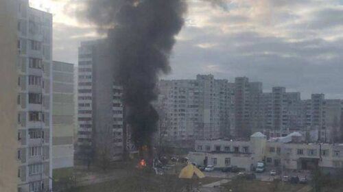 У результаті падіння уламка збитої захисниками російської ракети над житловим масивом Троєщина у Києві, мешканці будинку отримали поранення та згоріли 7 автомобілів. Про це повідомляє ДСНС. “Під час вибуху… сталося загоряння 7 приватних автомобілів. Вибуховою хвилею було пошкоджено вікна, балкони, кондиціонери з 1 по 15 поверх будинку. Бійці о 09:21 локалізували пожежу та о 09:27 – ліквідували. Проведено евакуацію людей з 1 під’їзду житлового будинку. Загиблих не виявлено. Кількість потерпілих наразі встановлюється. Усі постраждалі з легкими порізами від скла та забоями м’яких тканин”. Вибух пролунав у дворі 16-поверхового житлового будинку…