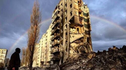 У місті Бородянка Київської області, яку нещадно обстрілювали російські вбивці 10 квітня з’явилась подвійна веселка. Про це повідомив місцевий житель Сергій Яценко. “Веселка на тлі руїн у Бородянці”, – написав місцевий житель. Нагадаємо, у Бородянці на Київщині, яка, напевно, найбільше постраждала від російських обстрілів, дивом вціліла кухонна шафа у зруйнованому будинку. Також Зеленський розповів про звірства окупантів у Бородянці та Маріуполі. Читайте також: Бородянку знищували авіабомбами. Багатоповерхівки складалися як карткові будинки (+відео) Like