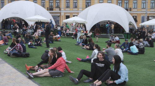 Будьте, як удома, кажуть гостям кияни, які прийшли на відкриття цього містечка. Майже тисяча – стільки людей прийшло на цей святковий захід. Софійська площа у Києві стала співочою. Тут відкрили фан-зону Євробачення. На головній сцені у день відкриття виступали співкаи Анастасія Прудіус, Світлана Тарабарова, Alyosha, Alloise. А головний пам’ятник площа – Богдану Хмельницькому – увесь в прапорах. Довкруж встановлено 42 стяори іноземних держав – учасниць Євробачення. Половина периметру Софійської площі з лівого боку від головної сцени відгороджена від проїжджої частини декоративними арками, які прикрашені штучними квітами та синіми, жовтими, червоними…