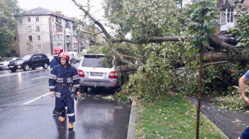 Внаслідок потужної зливи, яка сьогодні накрила Київ, в різних частинах міста були повалені дерева. Наразі відомо вже про 10 таких випадків. Про це повідомляє прес-служба ДСНС. Так, починаючи від 14:50, до рятувальників почали надходити сигнали про повалені через негоду дерева. Спочатку падіння дерева виявили на вул. Правди у Подільському районі столиці. Як виявилося, воно впало на автомобіль “ВАЗ” та лінію тролейбусу. Також на вул. Кіквідзе дерево впало на автомобіль Toyota. А на вул. Чудновського – на автомобіль Chevrolet. Крім того, дерево впало на проїжджу частину дороги на перехресті провулку Приладний…