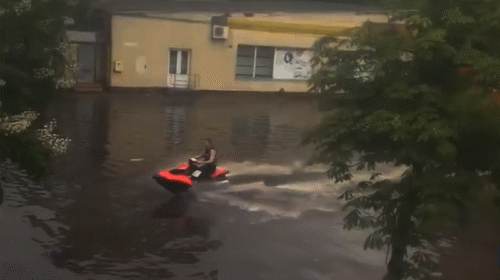 У неділю, 30 травня, у Житомирі пройшла потужна злива, через яку затопило частину вулиць. Про це повідомляє Житомир.info. Вулиці Житомира затопило після зливи, яка пройшла 30 травня. Зокрема, непрохідною стала вулиця Покровська та перехрестя Покровської та Грушевського. Пішоходам було по коліна води, а транспорт виявився заблокованим. На залитих водою вулицях помітили мешканців, які плавали на надувному матраці, а також пересувалися водним мотоциклом. Читайте також: Венеція по-чернівецьки (+відео) Like