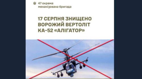 Воїни 47 окремої механізованої бригади збили ворожий вертоліт Ка-52 у Запорізькій області вранці 17 серпня − таким чином цього ранку оборонці України знищили уже два російські “алігатори”. Про це повідомили у 47 ОМБр. “Ранок воїнів 47 окремої механізованої бригади розпочався зі знищення російського гвинтокрила Ка-52 в районі Роботине, що на Запоріжжі”. Ворожий “алігатор” помітила вогнева група зенітного ракетно-артилерійського дивізіону близько 07:40 ранку. Вертоліт збили одним пуском з ПЗРК. Повідомляється, що на рахунку бійців 47 бригади – це вже 8-ий “назавжди приземлений Ка-52”, вартість якого сягає $16 млн. Раніше ми писали,…