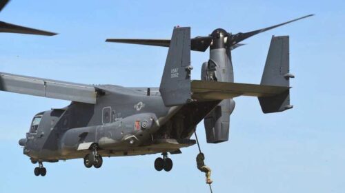 У межах українсько-американських міжнародних навчань Rapid Trident 2020 на Львівщину завітали американські «Скопи» — саме так перекладається назва конвертоплана «Оспрей». Повна назва цих хижих пташок, що є гвинтокрилим гібридом літака та гелікоптера, — Bell V-22 Osprey. Дві машини цього типу, що належать до повітряно-тактичної групи Сил спеціальних операцій Збройних сил США в Європі, забезпечують в Україні відпрацювання спільних завдань американськими спецпризначенцями спільно з підрозділами Сил спеціальних операцій Збройних Сил України у рамках двостороннього навчання. Здійснивши переліт з Вінничини на Львівщину, екіпажі «Оспреїв» прийняли на борт бійців українських ССО, що беруть участь у міжнародному навчанні «Репід Трайдент» Міжнародного центру миротворчості та безпеки Національної академії сухопутних військ. Над однією з учбових ділянок полігона…