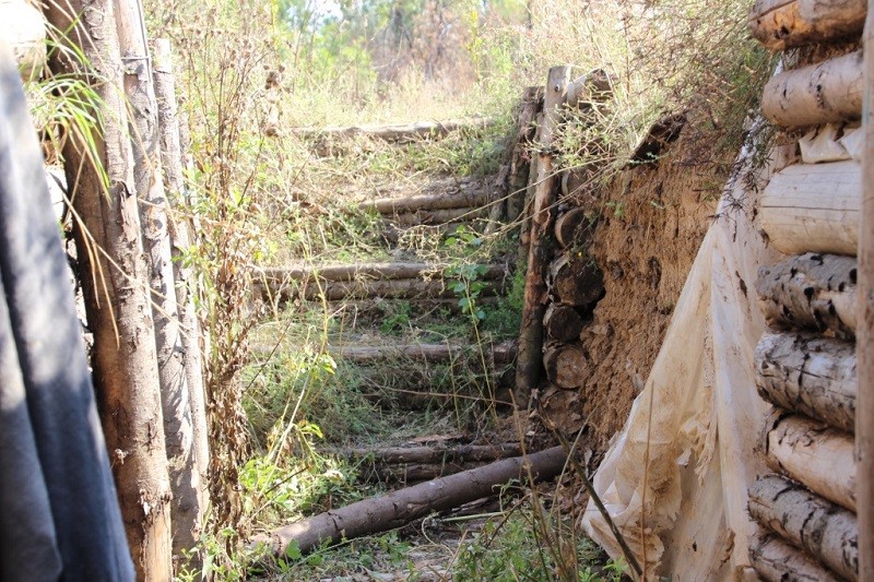 “128-ма гірсько-піхотна бригада надійно захищає свою ділянку. А от за пару кілометрів углиб – те, що мало би бути другою лінією. Те, за що заплачено мільярди гривень. Те, що на ділі є імітацією опорного пункту: окопи без кріплення, перекриття бліндажів з гілок і 5 – 10 см ґрунту, броньовані двері та вікна вкрадені.