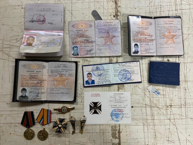 На фото зображені трофеї та документи, які морпіхи виявили у ворога.