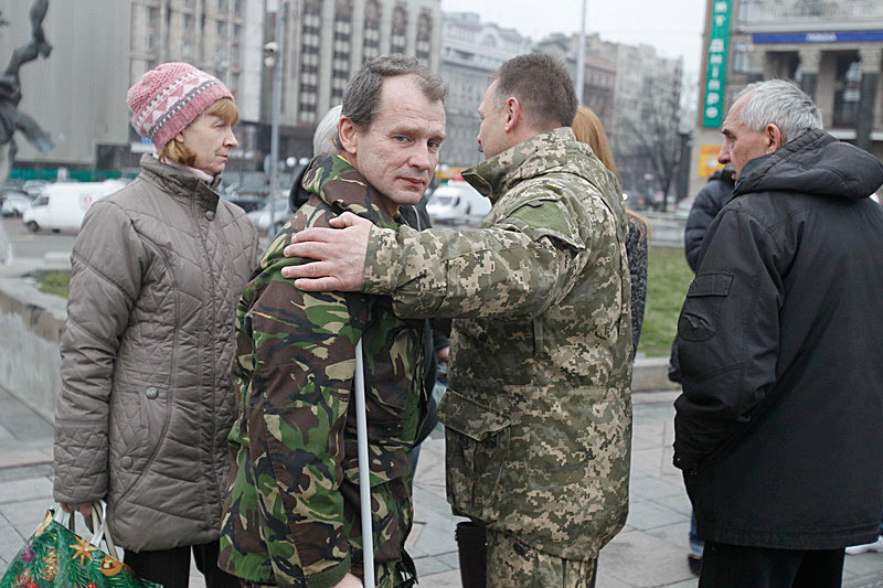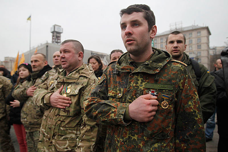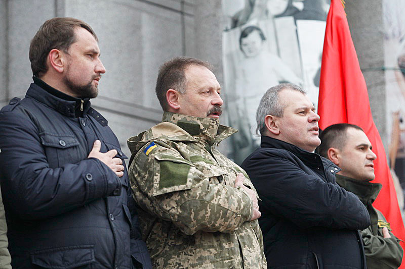 Сьогодні, 14 березня біля монументу Незалежності вшановували славних добровольців, які виступили на захист Вітчизни. Тут знову зустрілися бойові побратими, волонтери, громадські активісти.